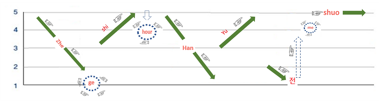 허공에 오선지를 그리고, 성조 높낮이를 손으로 지휘해 보자.