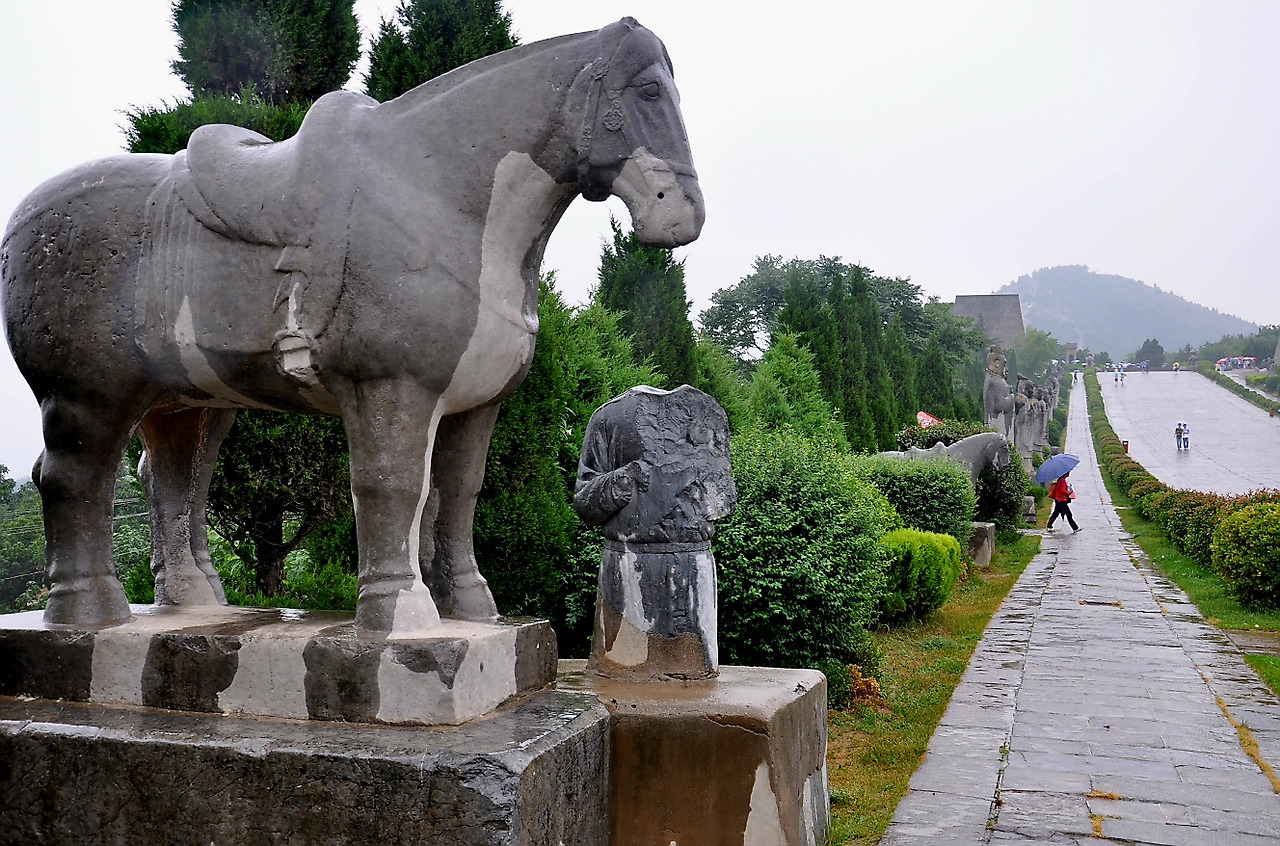 당나라 고종과 무측천의 합장릉인 건릉乾陵. 뒤에 보이는 1,048m 높이의 양산에 의지하여 세운 능이다. 아직 도굴되지도 않고 발굴하지도 않은 황릉이다. 진시황릉보다 더 많은 보물들이 매장되어 있을 것으로 추정된다. 발굴하면 십중팔구 중국 문화사를 다시 써야 할 것이다.