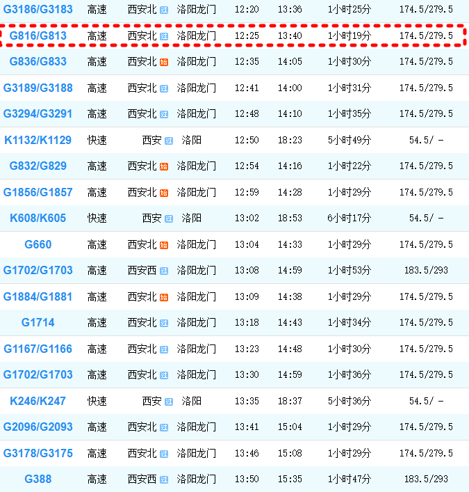 그리고... 고속철과 일반 열차는 출발/도착 역이 다르니까 착각하시면 안 됩니다? 일반 열차는 西安과 洛阳 역에서, 고속철은 西安北과 洛阳龙门 역이니까 절대 헷갈리시면 안 돼여?