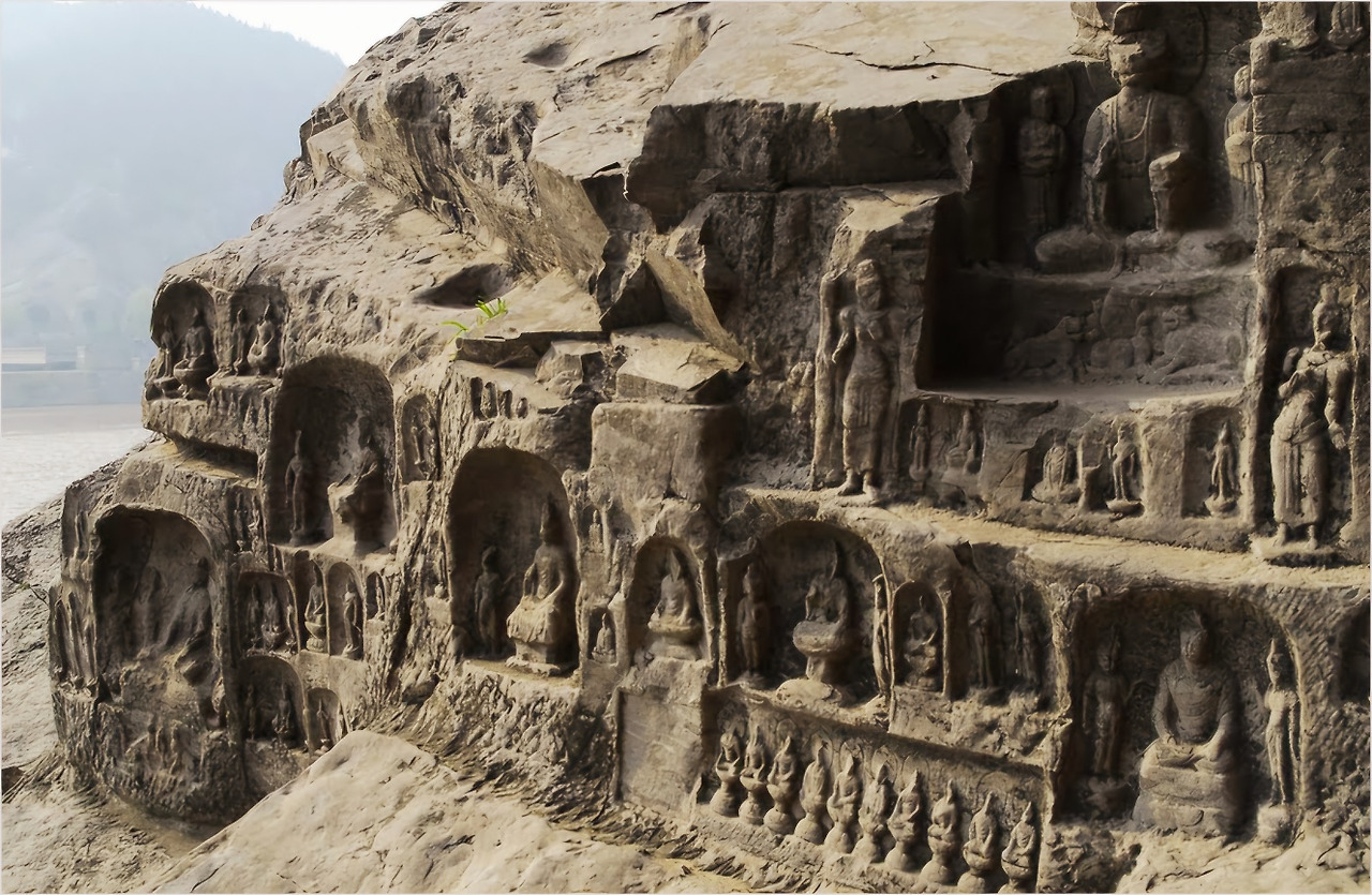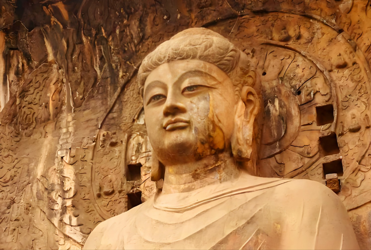 ▶ 노사나불의 높이는 17.14m. 머리 부분만 4m, 귀의 길이만 1.9m다. 무측천武則天 때 건축했다. 그녀의 얼굴을 본땄다고 한다.