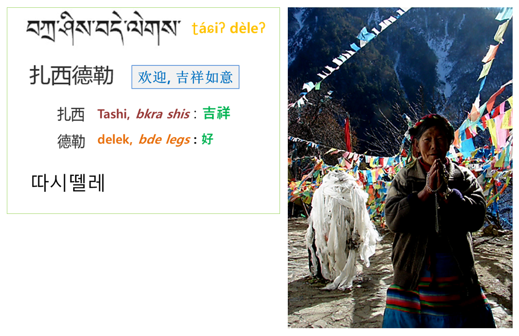 '뗄레(델레; Delek, བདེ་ལེགས་)'는 평안, 안녕, 행복 등의 뜻.