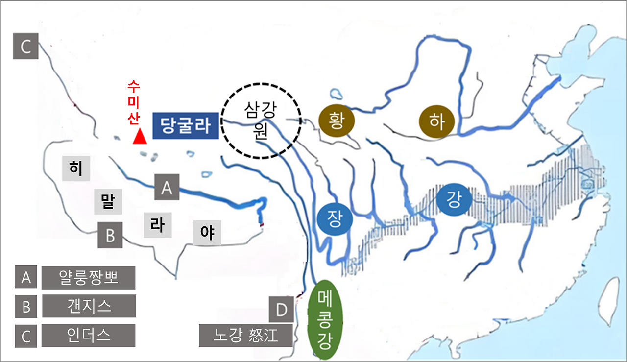 넷째, 수미산 ⇒ 당굴라 ⇒ 삼강원 : 황하, 장강, 메콩강