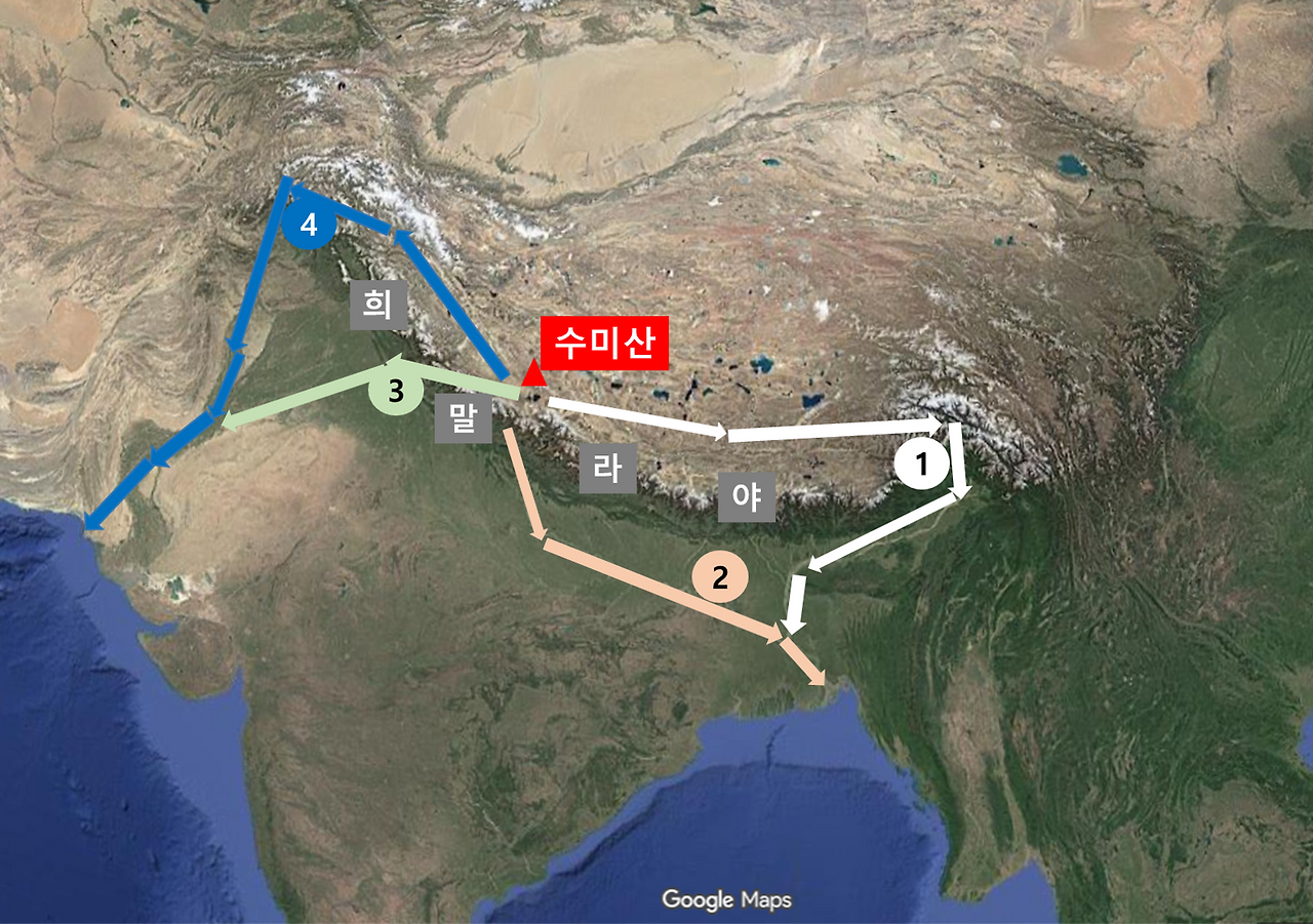 셋째, 수미산과 4대 산의 시작 : 히말라야, 카라코람, 곤륜산, 당굴라