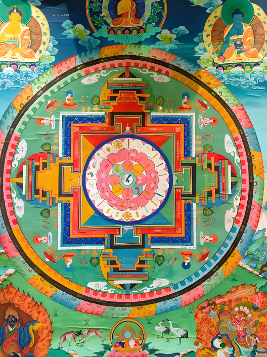 어디선가 만트라가 울려왔다. "옴 마니 밤메훔..." 멈췄던 숨이 쉬어졌다. 후우… 그 순간, 지도가 뒤집히고 흩어졌던 만물이 하나의 점을 중심으로 다시 모이기 시작했다. 나도, 우리도, 이 세계도 다시 움직이기 시작했다. 바로 여기 이곳 수미산에서...