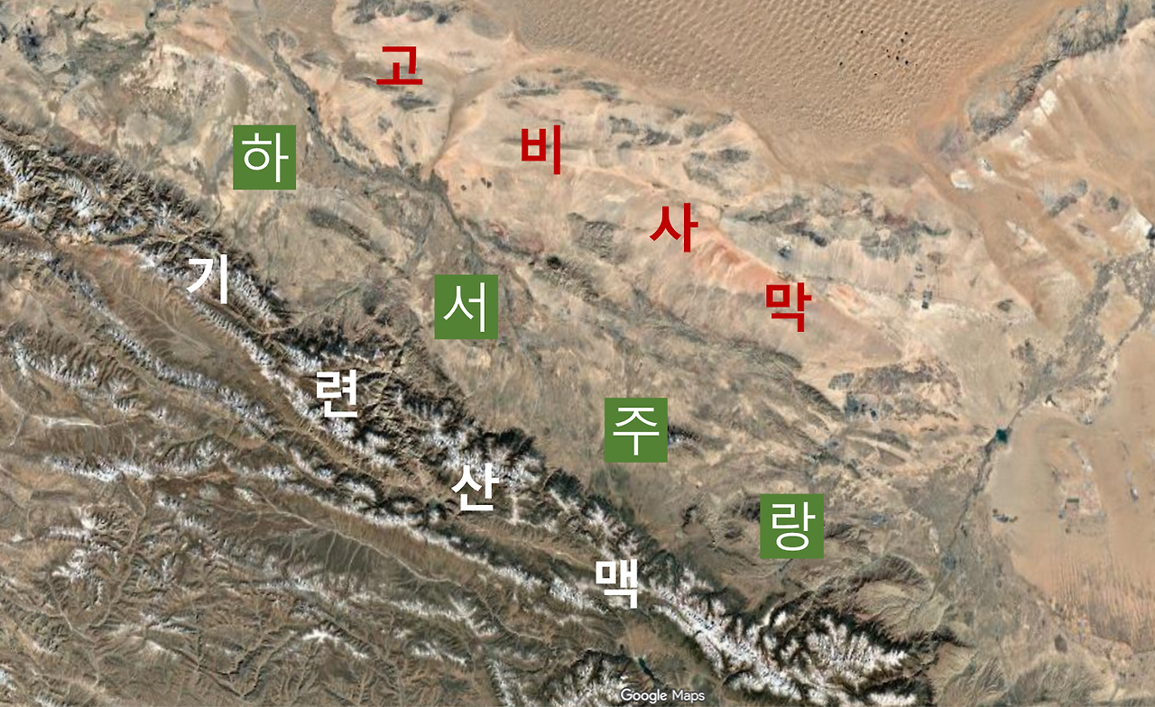 ① 하서주랑河西走廊 : 기련산과 고비사막 사이의 길고 좁은 그린벨트 지역. 하서회랑(일본 명칭)