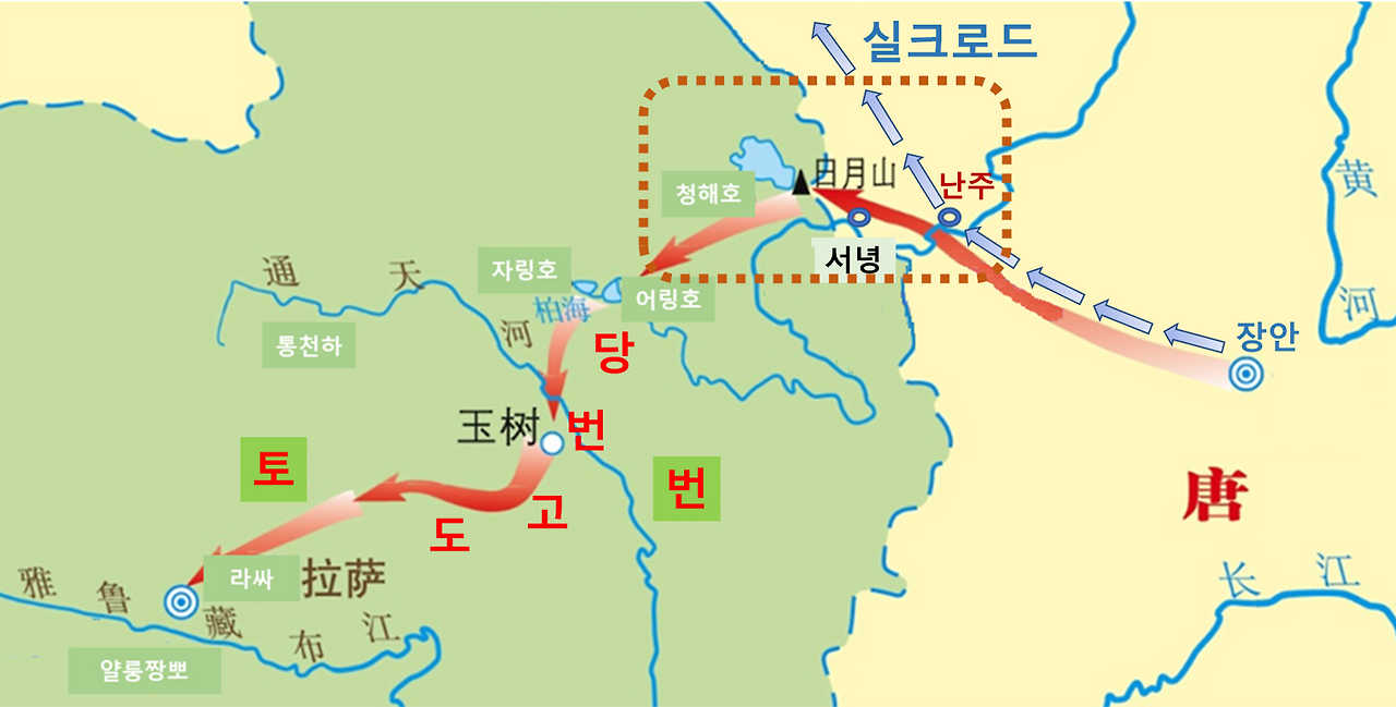 티베트는 7세기 중엽 쏭짼깜뽀 당시에 이 지역에 진출해서 '서녕'을 군사 전초 기지로 삼았었죠. 그러다가 8~9세기가 되자 여기를 교두보로 삼아 하서주랑과 서역 및 중앙아시아까지 점령하여 대 제국을 세웁니다. 그러니까 그때쯤엔 '서녕'은 당연히 이미 수도인 라싸에 못지않은 '뽄(지방 권력)'을 지니게 되었겠죠?