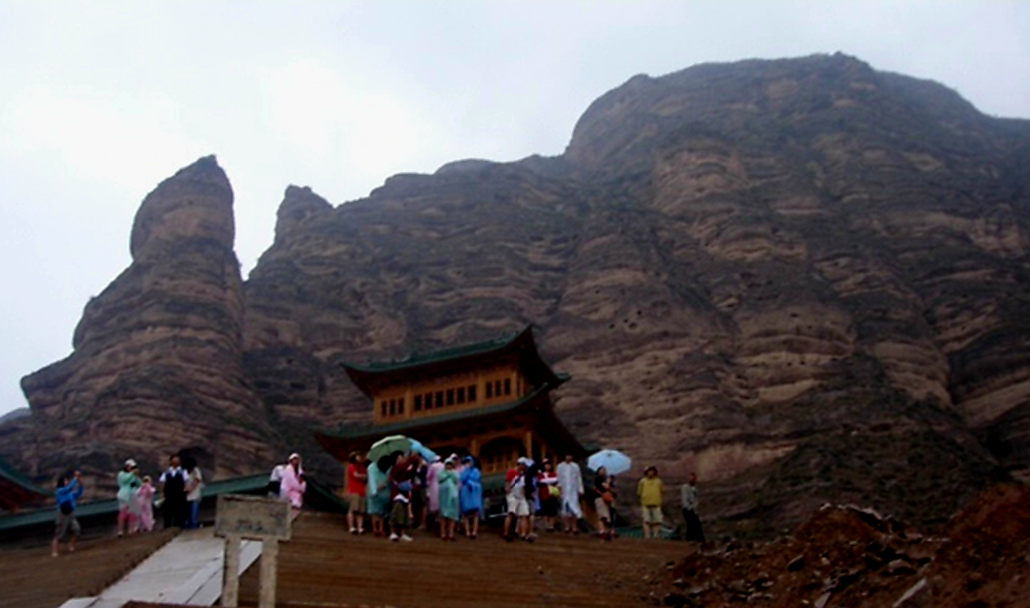 (상) 난주/서녕 일대를 가게 되면 꼭 세계문화유산인 병령사를 들러보시길 추천한다. 무엇보다 달나라에 온듯한 유가협의 풍광이 너무도 이색적이다. 출처: 바이두. (하) 폭우 속의 병령사 & 인솔했던 학생들. 2005. 7. 1.