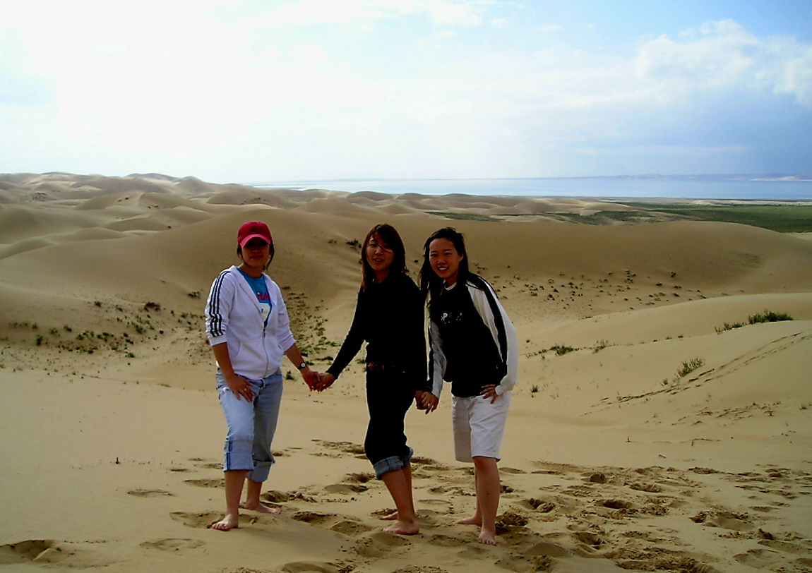 (상) 청해호에서 바라본 사도. 출처: 바이두. (하) 소오생이 인솔했던 문화체험단 학생들. 2005. 7. 5.