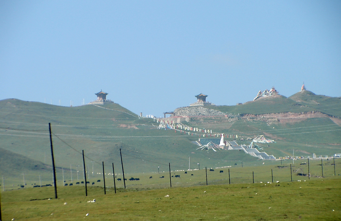 (사진 상) 여기는 일월산日月山(해발 4,877m)을 넘어가는 고갯마루(해발 3,520m). 이 고갯마루에서 서쪽을 바라보면 일망무제의 대초원이 끝없이 펼쳐집니다.(사진 하) 한반도나 중국대륙 중원 땅의 풍광과는 완전히 다른 모습. 여기서부터 티베트고원이 시작되는 거죠.