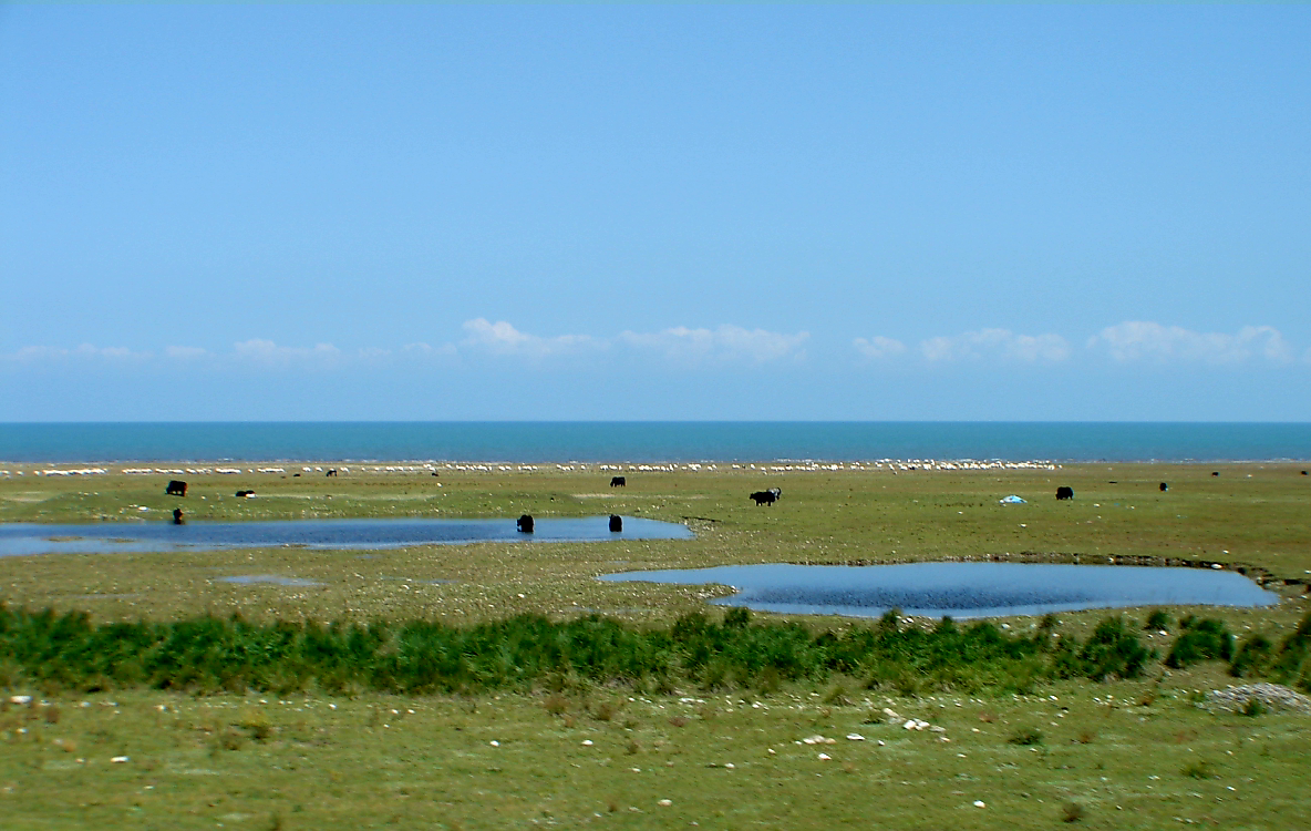 (상) '청해호'는 티베트 지명인 '응온뽀 초(sngon po mtsho, 푸른 바다)'를 직역한 말이다. '초'는 '바다'라는 뜻. 그러나 티베트에는 우리가 말하는 '바다'란 없다. '커다란 호수'를 '바다(초)'라고 한다. 사실 청해호는 염수호다. 바다나 마찬가지다. 사진 출처: 바이두. (하) 2005. 8. 29.