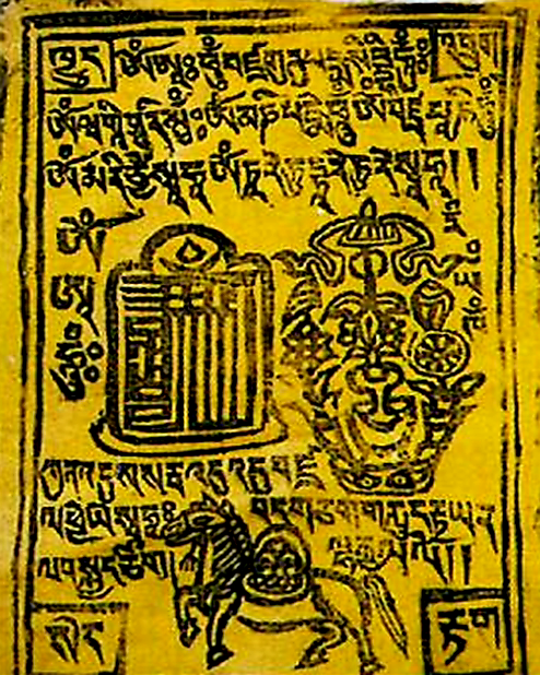 이렇게 룽다는 '풍마 - 바람의 말'이란 뜻이지만, 또는 그 풍마를 그린 종이 한 장, 또는 천 한 쪼가리를 의미하기도 하죠. 근데 이건 개인의 복을 바라는 기복祈福 신앙이니깐 고대 샤머니즘의 잔재라고 할 수 있어요. 그래서 주로 개인적인 기도처나 말안장 또는 자동차 운전석과 같은 사적인 장소에 붙여놓습니다.