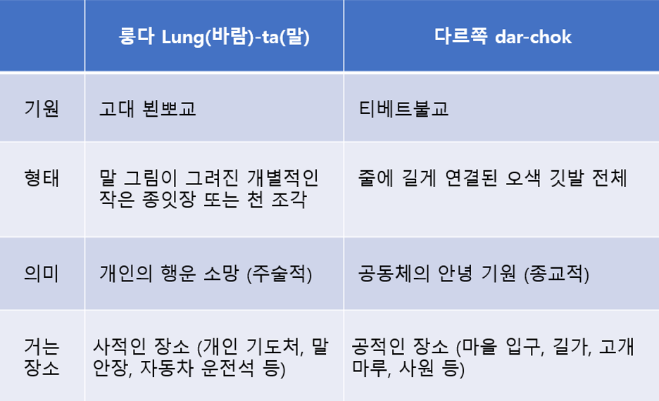 (김민호) 그렇습니다. 많은 사람들이 '다르쪽'과 '룽다'를 혼동합니다. 하지만 다르쪽과 룽다는 비슷하지만 분명 서로 다른 개념이랍니다. 명쾌하게 도표로 정리해 드릴까요?