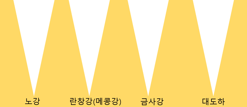 첫째, 교통이 대단히 불편해요. 전 세계적으로도 외부에서 접근하기가 매우 어려운, 아주 험준한 지형이랍니다. 왜냐하면 아래의 그림처럼... 평균고도 4,000m의 높은 고원을 남북으로 가로지르는 4~5개의 큰 강이 있어서 차를 타고 지나가려면 계속 오르락내리락해야 하기 때문이죠. 게다가 다리가 수백 km에 하나밖에 없어서 강 건너 눈에 빤히 보이는 곳까지 가려해도 1,000km 이상을 돌아가야 할 경우가 많습니다.