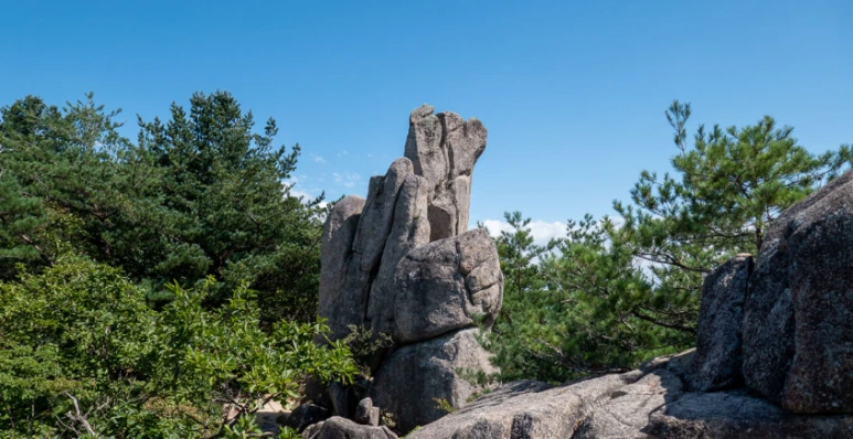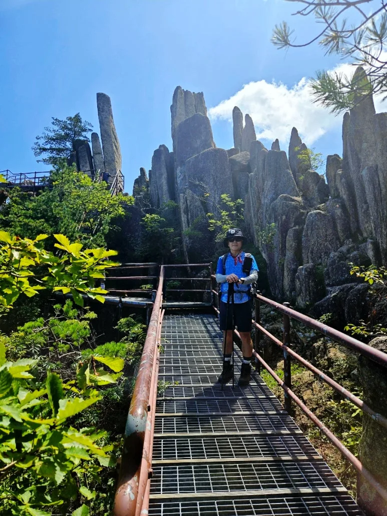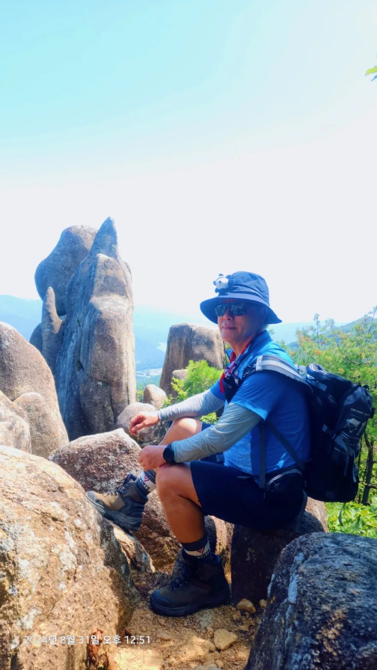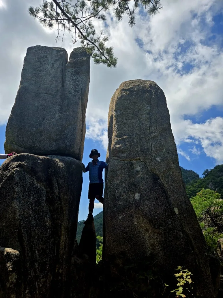 이곳에서 멋진 사진을 남기기 위해 함께 산행했던 여자 산우 한 명이 두 개의 바위 사이에 있는 작은 바위에 올라서려다 미끄러져 뒤로 넘어졌다. 바로 앞에 서있었던 나는 넘어지는 여자 산우의 머리가 바위에 부딪치지 않도록 머리를 두 손으로 재빨리 받쳐서 보호했다. 지난봄 백아산 산행 때 함께 했던 산우가 바위에서 미끄러지면서 넘어져서 크게 다졌던 기억이 주마등처럼 스쳐 지나가는 아찔한 순간이었다. 그 덕분인지 다행히 크게 다치지는 않았다.