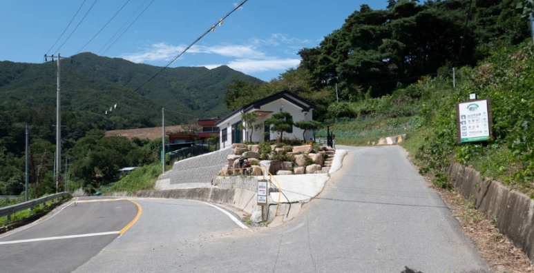 청량동 마을회관 근처(산악회 버스 하차 장소)
