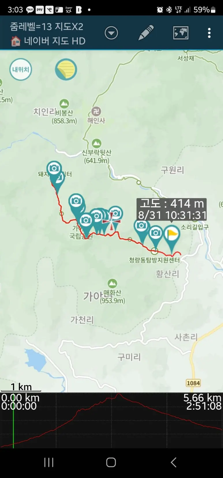 산행 통계 무더위가 지속되는 8월의 마지막 날, 가는 여름을 배웅하고 오는 가을을 마중하기 위해서 멀리 경상남도 합천군에 위치하고 있는 가야산1) 남산제일봉에 다녀왔다.