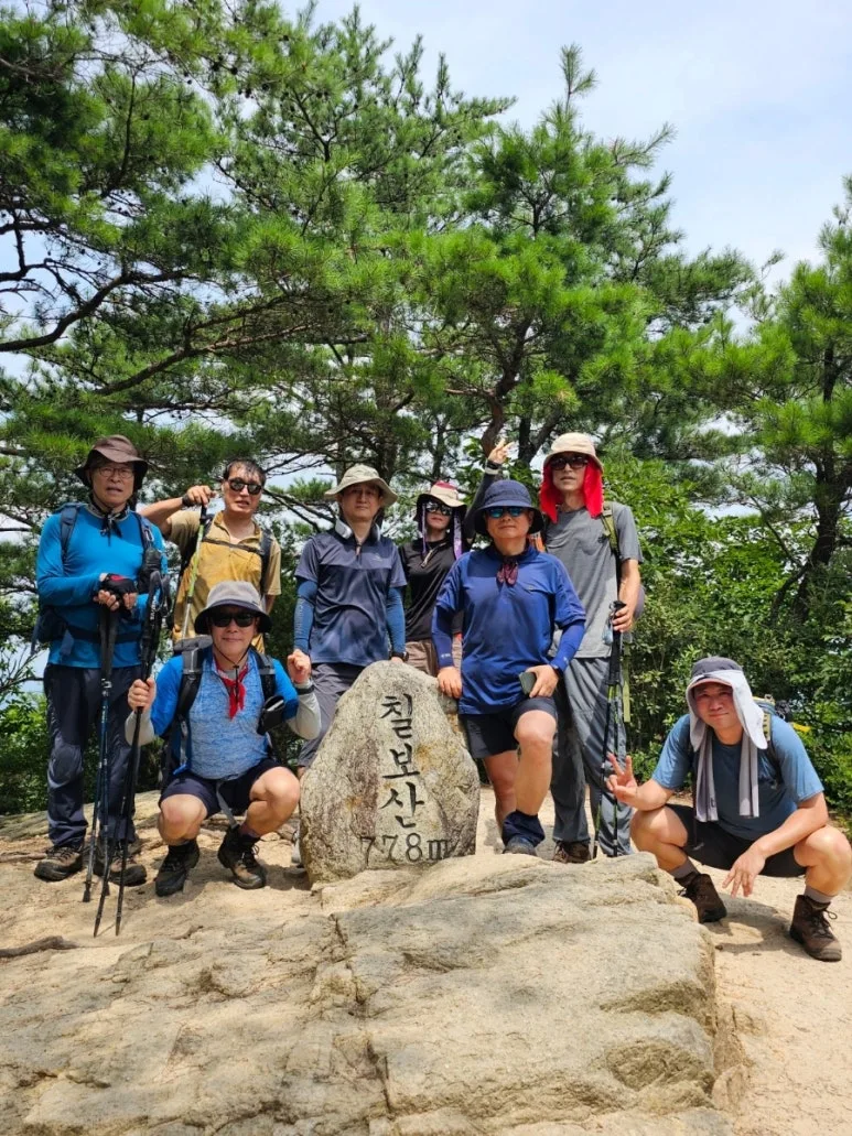 지난 5월 11일에 청광종주를 리딩하였던 산타리아님께서 오늘도 리딩을 해주셨고 울림산악회 고수분들이 산행에 참여하였다. 칠보산은 등력이 높은 고수들에게는 간단한 트레킹 코스지만 등력이 낮은 사람에게는 여름 무더위에는 무척 힘든 산이다.