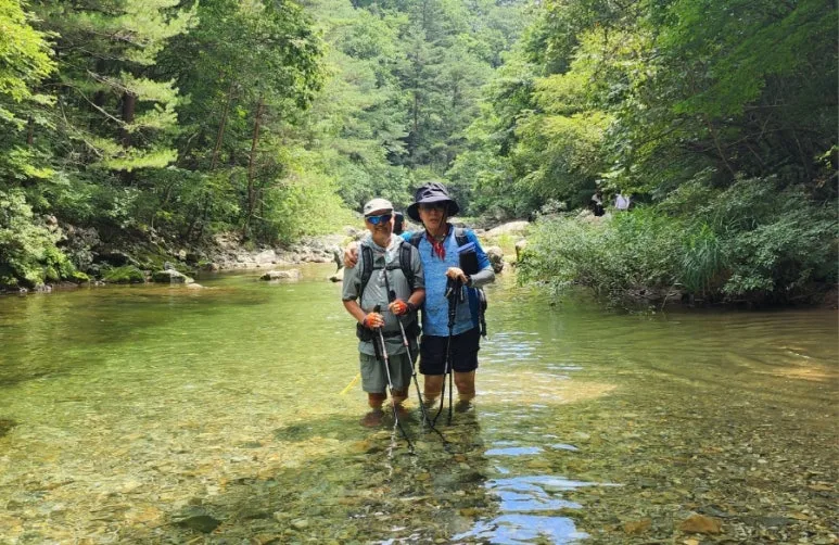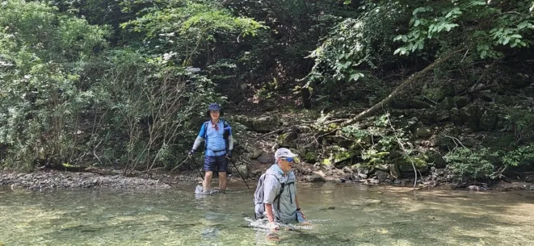 계곡 트레킹 중