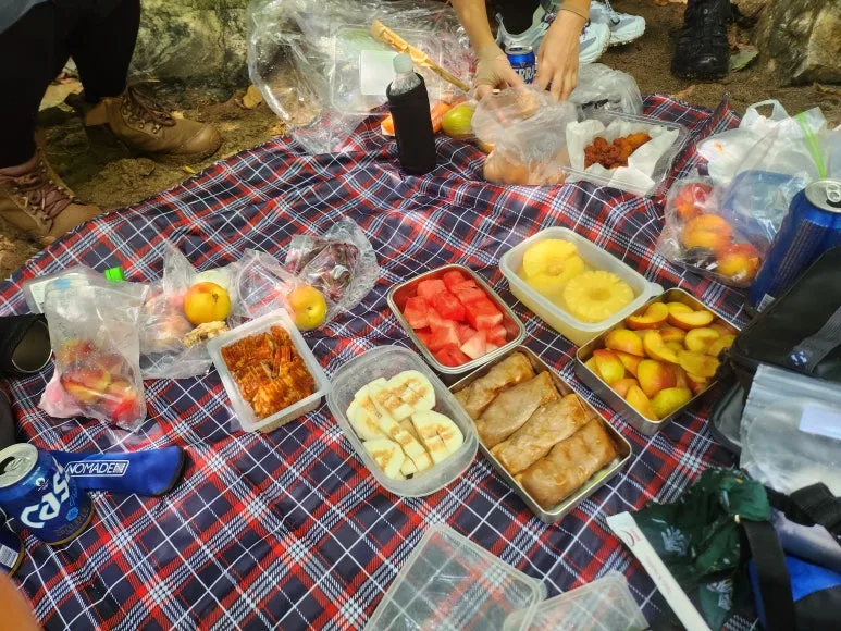 물놀이 후에 즐거운 간식 시간(시원한 맥주와 와인도 있다.)