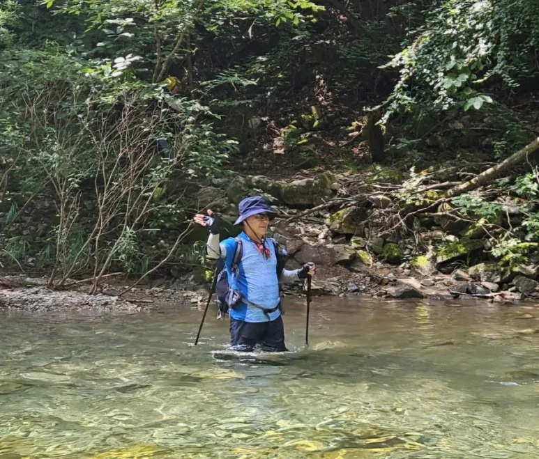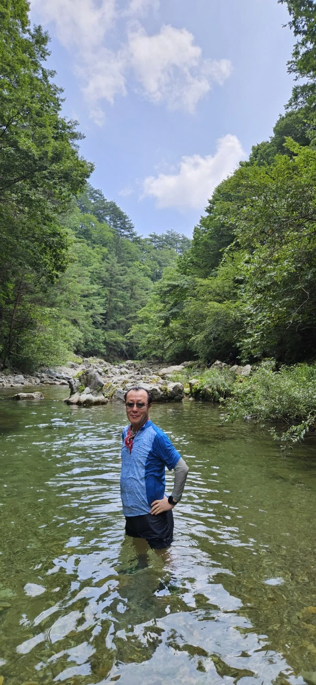 본격적인 계곡 트레킹을 위해서 몸을 계곡물에 담그다.