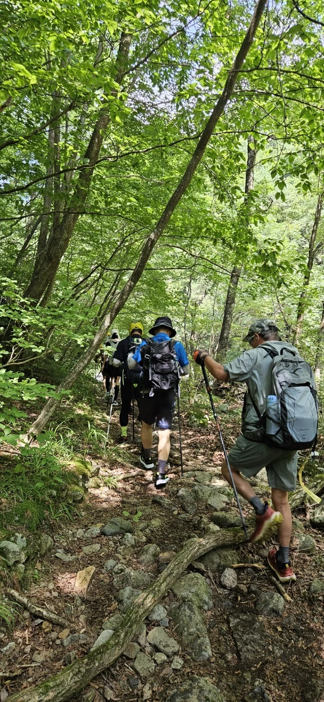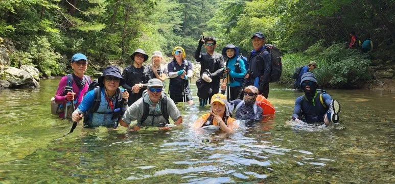 고딩시절부터 절친이 종원이(후에 일행들은 독고 형님이라 불렀다,) 멀리 수원에서 온 부부와 초딩시절부터의 친구 3명, 막걸리 은혜를 베풀어준 부부, 청라 세 자매, 물놀이에 진심이었던 여자 산우, 일행들의 사진 촬영을 책임져준 남자 산우, 중도 하산한 부부, 산행 대장님 모두 15명 아침가리계곡에서의 멋진 추억을 함께 하였다.