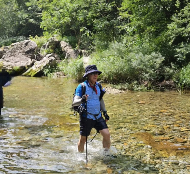 계곡물을 가로지르며