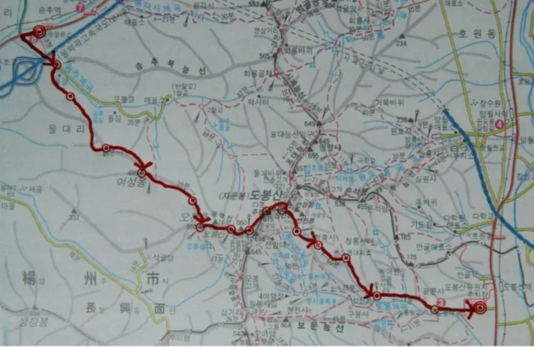 산행코스 : 송추 –여성봉 – 오봉 – 오봉능선 -신선대 - 마당바위 - 천축사 - 도봉대피소 - 도봉산역