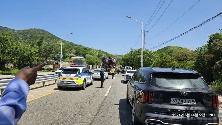 귀석이는 광교에서 전철을 승차했다는 톡을 오전 9시경에 단톡방에 보내왔다. 의섭이도 10시쯤 약속 장소에 도착하여 먼저 여성봉에서 놀고 있겠다는 톡을 단톡방으로 보내왔다. 종원이는 공사 현장 사진을 오전 9시 55분에 보내며 즐거운 산행을 응원해 주었다. 창현이도 10시 02분에 응원 톡을 보내 주었다. 종원이와 창현이의 응원 톡이 2024년 05월 정기 산행을 무사히 마치는 데 큰 힘이 되었다.