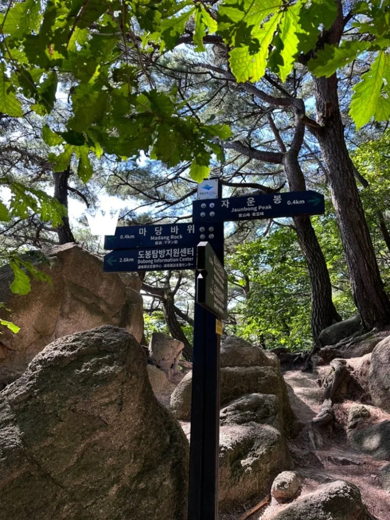 멋진 인생 사진을 건지기 위한 포즈를 잡고 촬영을 한 후에 신선대로 이동 중에 자운봉 이정표를 만나게 되었다. 갈림길에서 잠시 고민하고 의논 끝에 자운봉이 아닌 도봉탐방지원센터 방향으로 하산하기로 결정했다. 현수는 자운봉을 가지 않고 도봉탐방지원센터로 내려가는 것을 많이 아쉬워했다. 하산 길 중간에 천축사 앞 벤치에서 후미조(장수, 현수)를 기다리며 휴식 시간을 가졌지만 천축사 경내는 둘러보지 않고 사진으로만 남겼다. 우리들은 오후 4시 30분에 준비된 하산식에 시간을 맞추기 위해서 서둘러서 식당으로 향했다.