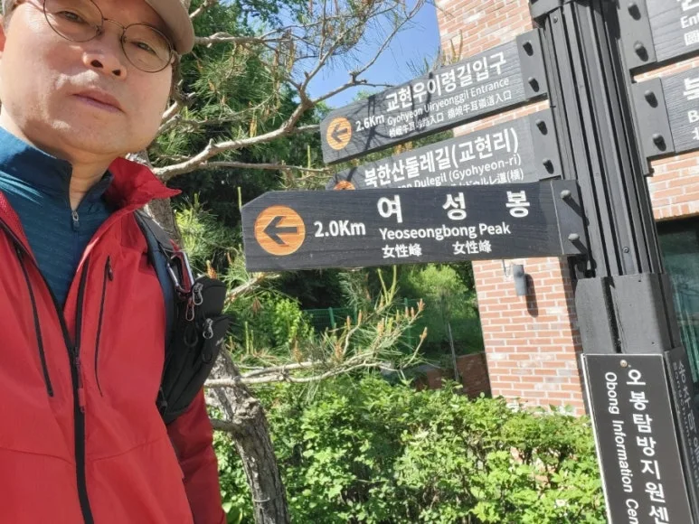 먼저 도착한 의섭(오봉탐방지원센터 안내판 앞)