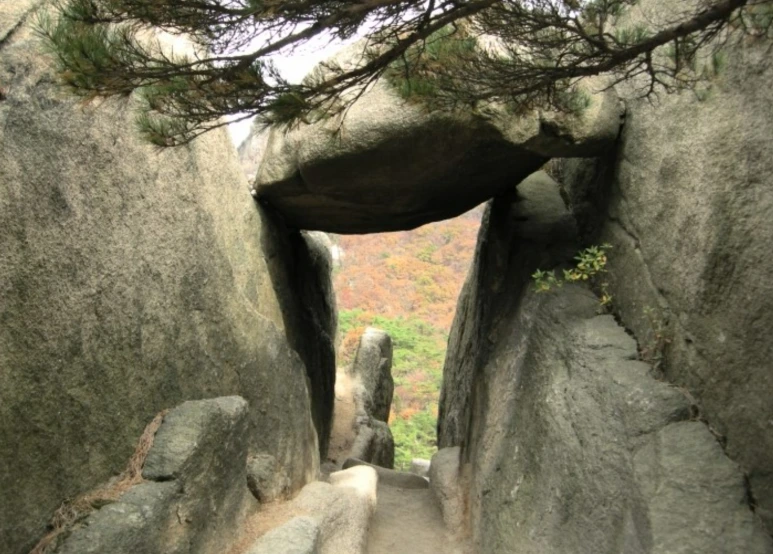 문수봉 정상에서 단체 사진 사모바위를 지나면 하늘로 통하는 문인 통천문에 이르게 된다. 통천문을 통과하여 오늘 산행의 마지막 오르막길을 힘차게 올라 드디어 문수봉(봉우리 아래에 위치한 문수사에서 유래되어 붙여진 명칭이다.)에 도착했다. 문수봉을 오르는 내내 행복지킴이 남편이 얼마나 가면 되냐고 묻고 또 묻는다. 물을 때마다 조금만 가면 된다는 뻔한 대답이 어디선가 들려왔다. 행복지킴이 남편이 아내와는 다르게 많이 힘들어했다. 나도 저런 시절이 있었는데... 牛空 따라 산에 오르다 보니 나도 모르는 사이에 장거리 종주 산행 능력을 지니게 되었다.