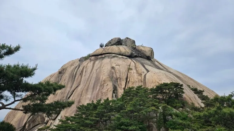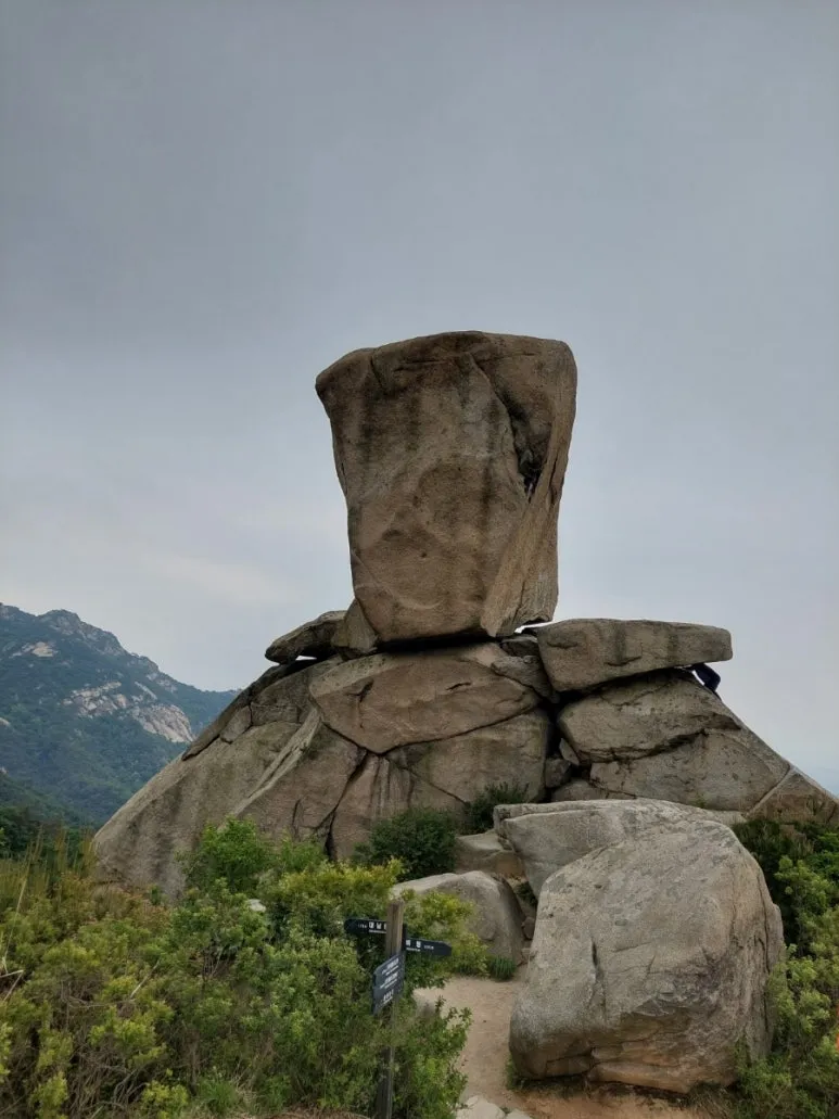 오후에 비가 내리기 전에 산행을 마치기 위해서 서둘러서 족두리봉의 남은 코스를 올랐다. 족두리봉이 가장 잘 보이는 위치에 도착하여 몇 장을 사진을 더 남기고 엄청난 에너지를 사용하여 몇 차례의 오르내리막길을 걷고 또 걸어서 향로봉(멀리서 보면 향로처럼 생겼다고 해서 붙여진 명칭)에 도착했다.