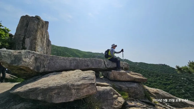 정원석 정원석과 가까운 곳에 있는 코끼리 바위 앞에서 점심 식사를 함께 한 이후에 다시 하리마오님을 만났다. 코끼리 바위에서 얼마 지나지 않은 곳에서 우리 일행보다 앞서 하산하던 산너울 누님, 아가타님 일행과 우리보다 후미에 있던 탱구리 대장님, 산우님들과 합류하여 원점 회귀 지점으로 하산하였다.