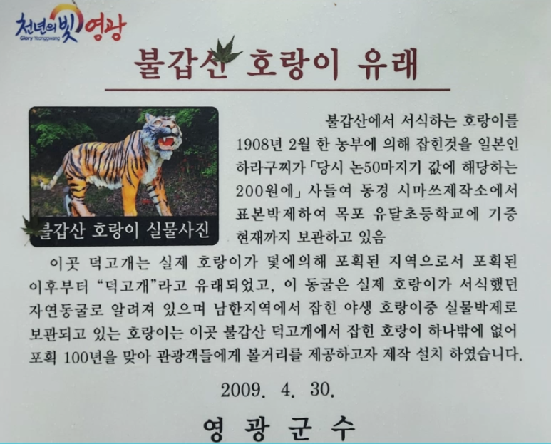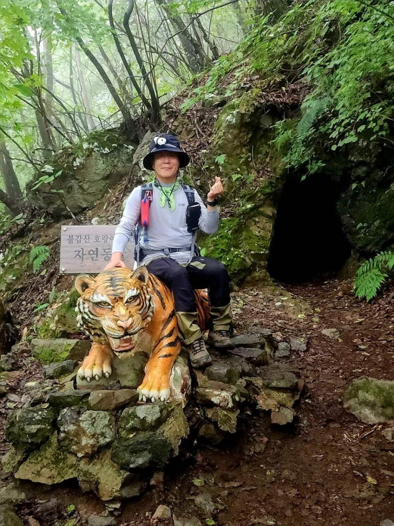 불갑산에 살고 있는 호랑이를 잡기 위해 덫을 놓았던 곳이라는 덕고개를 지나 호랑이 서식지였던 자연 동굴에서 인증 사진을 남기고 정상으로 이동하였다