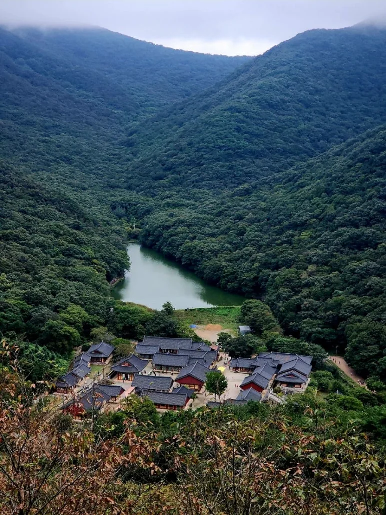 노적봉을 지나서 법성봉에 도착하여 불갑사와 불갑사 저수지를 볼 수 있었다. 이곳이 오늘 불갑산에서 맞이한 처음이자 마지막 조망 터였다. 산행 내내 사방 천지는 곰탕의 연속이었고 보이는 것은 앞에 올라가는 사람의 엉덩이뿐이었다.