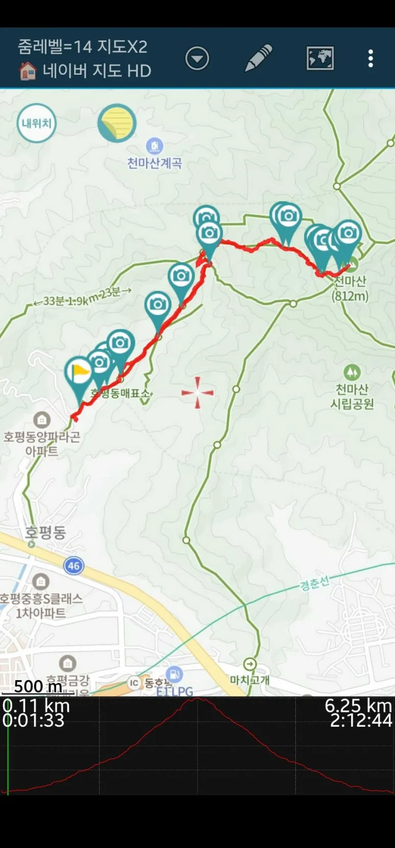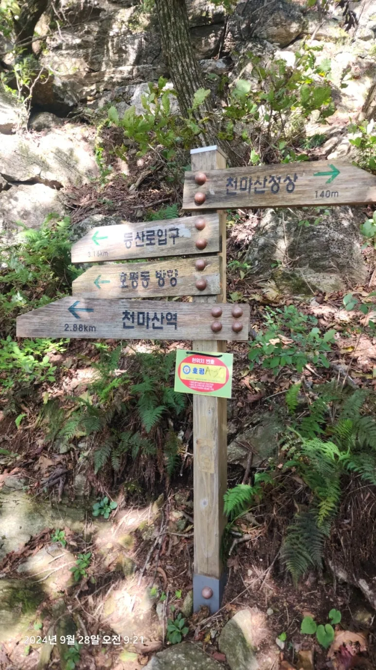 등산코스: 호평주차장 - 수진사입구 - 천마의 집 - 꺽정바위 - 정상 - 원점 회귀