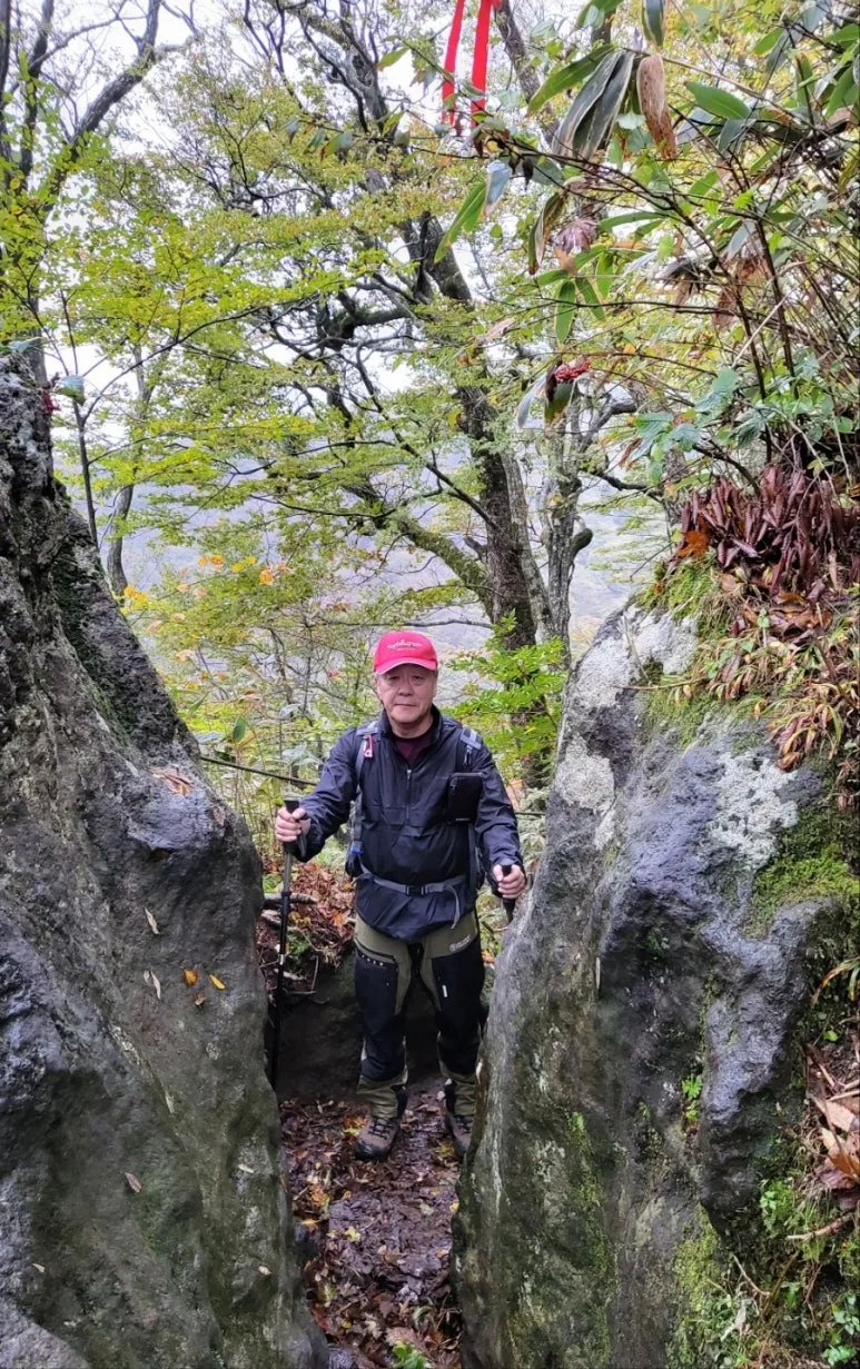 관음사 탐방지원센터에서 목교까지는 비교적 완만한 구간이었지만 목교를 지나자마자 만나게 되는 급경사의 깔딱 계단부터 본격적으로 힘든 구간이 시작되었다. 깔닥 계단을 올라 개미등으로 가는 길목에는 큰 바위 틈새를 지나야 하는 비좁은 길(좁은 문)이 놓여 있었다.
