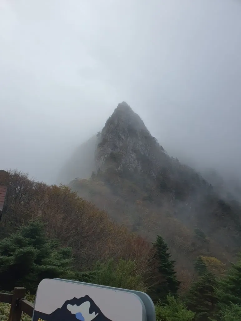 삼각봉마저도 안개에 싸여 그 모습을 볼 수 없었다. 아주 잠깐 안개에서 얼굴을 잠시 보여 주었을 뿐이었다.