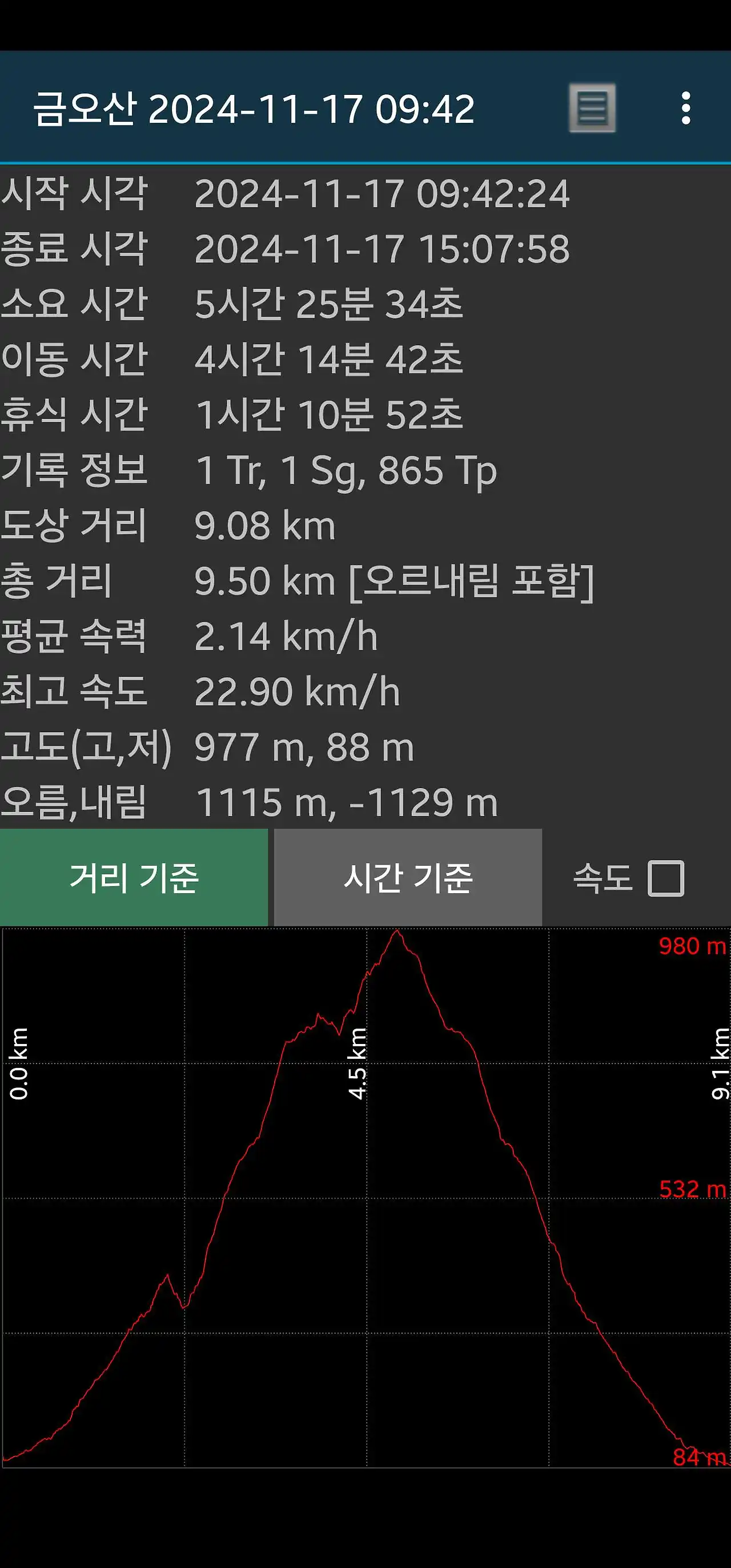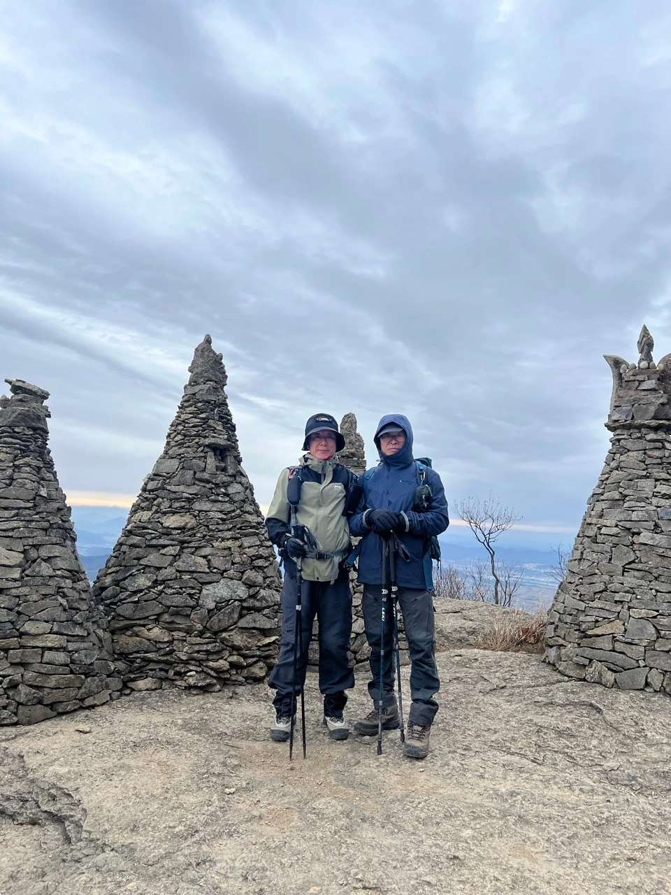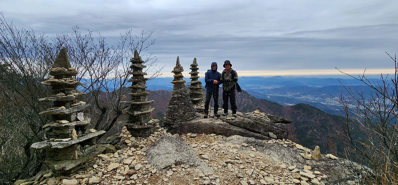 할딱 고개를 지나면서 가파른 등산로가 계속되었고 이 코스는 결코 쉽지 않았다. 정상까지 1.3킬로미터가 남은 지점부터 경사가 훨씬 더 가팔라졌다. 이쯤에서부터 금오산은 가을에서 겨울로 계절 변화를 하여 매서운 찬바람이 세차게 불었고몸은 저절로 움츠러들었다.