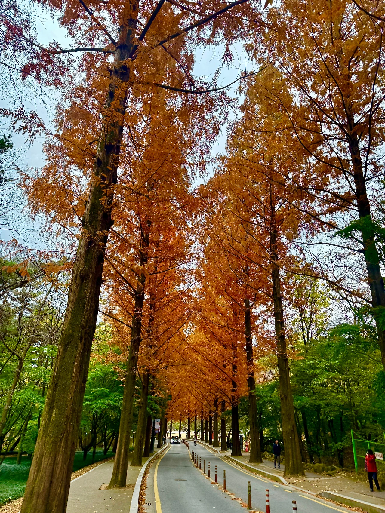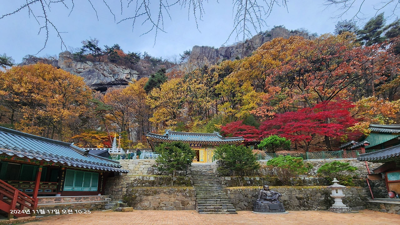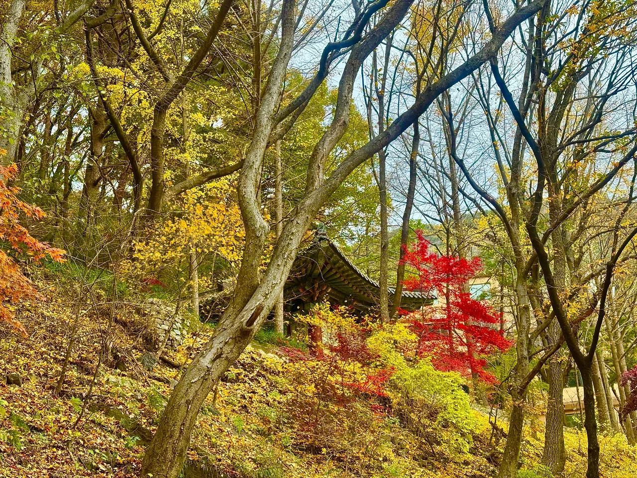 빨갛고 노란 단풍 나무가 가득한 해운사는 한 폭의 그림과 같이 아름다웠다.