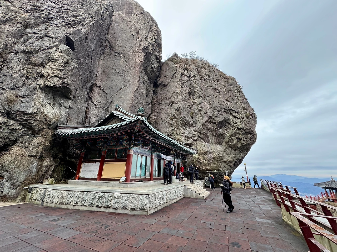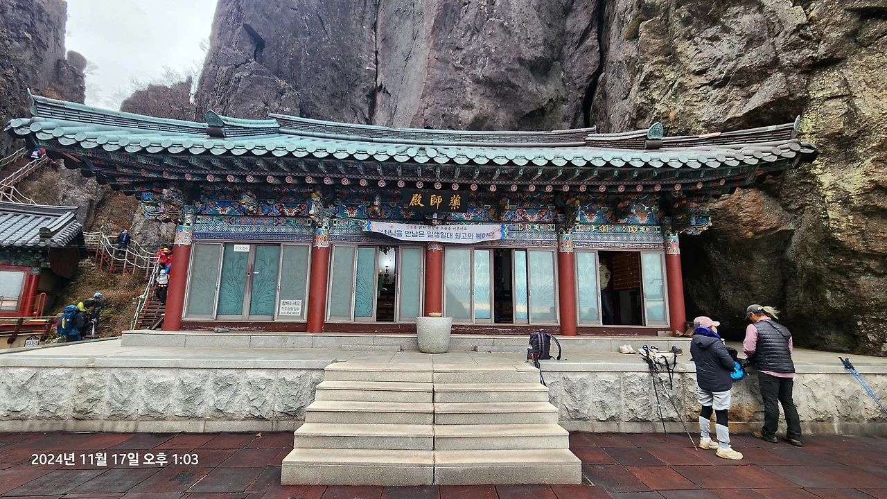 약사암은 의상대사에 의해 창건된 사찰로, 약사봉의 봉우리 아래 깎아지른 절벽 위에 위치하고 있어 장엄한 경관을 자랑하고 있었다. 약사암 한편에서는 방문객들을 위해 따뜻한 커피를 제공하고 있었다. 한 잔의 따듯한 커피는 찬바람이 부는 차가운 날씨에 언 몸을 녹이며 잠깐의 휴식을 취하기에 충분하였다. '동국제일문'이라는 현판이 걸려 있는 약사암 일주문은 멋진 사진 촬영 장소가 되었다.