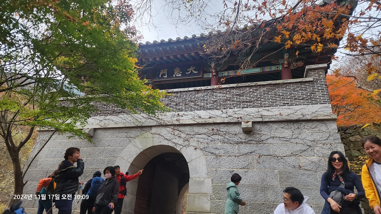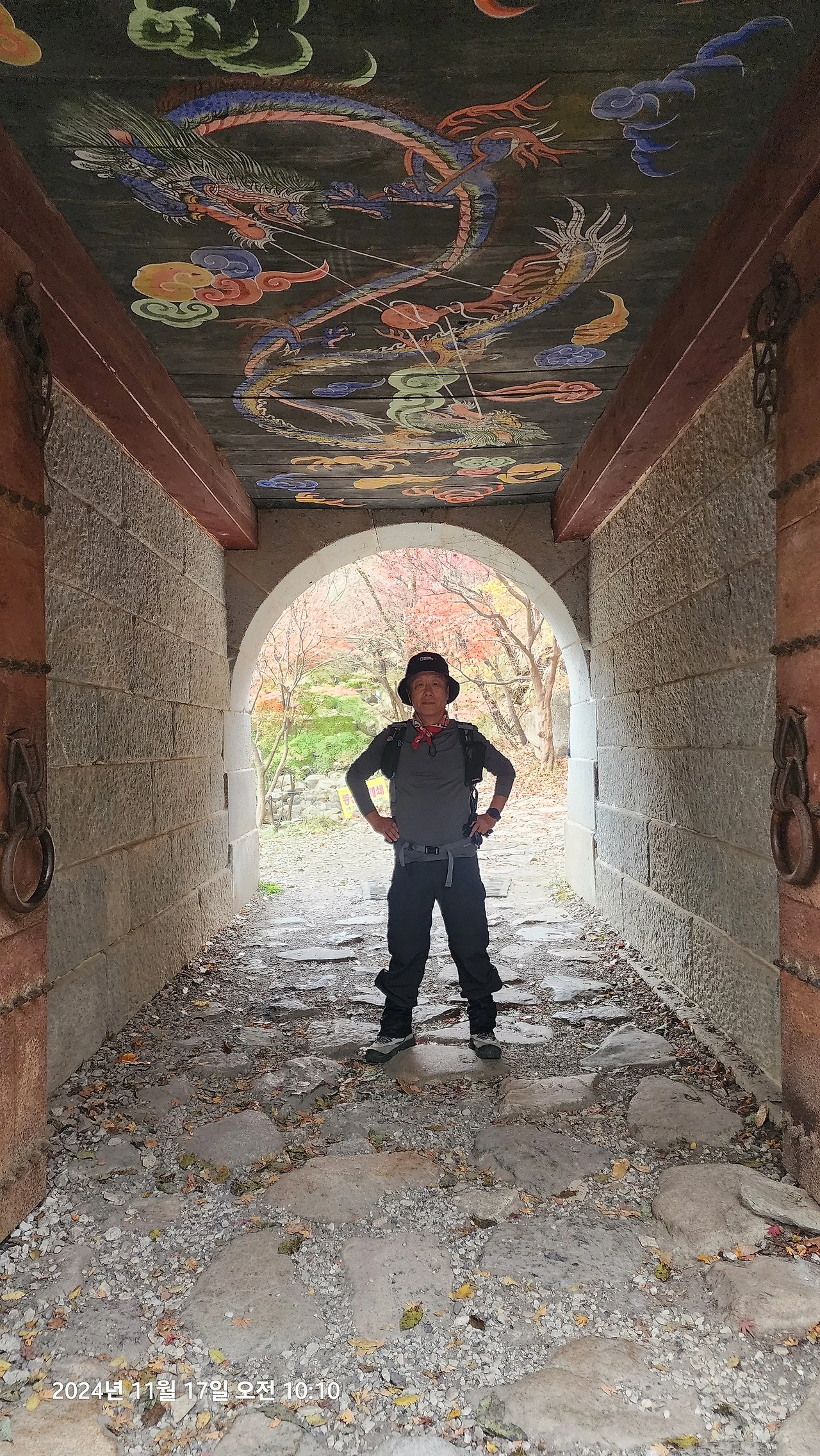 금오산성 주변은 곱게 물든 단풍으로 둘러싸여 있어 대혜문의 전체 모습을 볼 수는 없었다. 완만한 돌계단을 올라서 천장의 청룡 두 마리를 바라보고 대혜문을 통과해 금오산성을 걸었다. 금오산성은 금오산 정상부에 쌓은 외성과 계곡을 둘러싼 돌로 쌓은 이중의 산성이었다. 고려 후기에 왜구의 침략을 방어하기 위해 성을 쌓았으며, 외성의 길이는 3.7킬로미터, 내성은 2.7킬로미터였다.