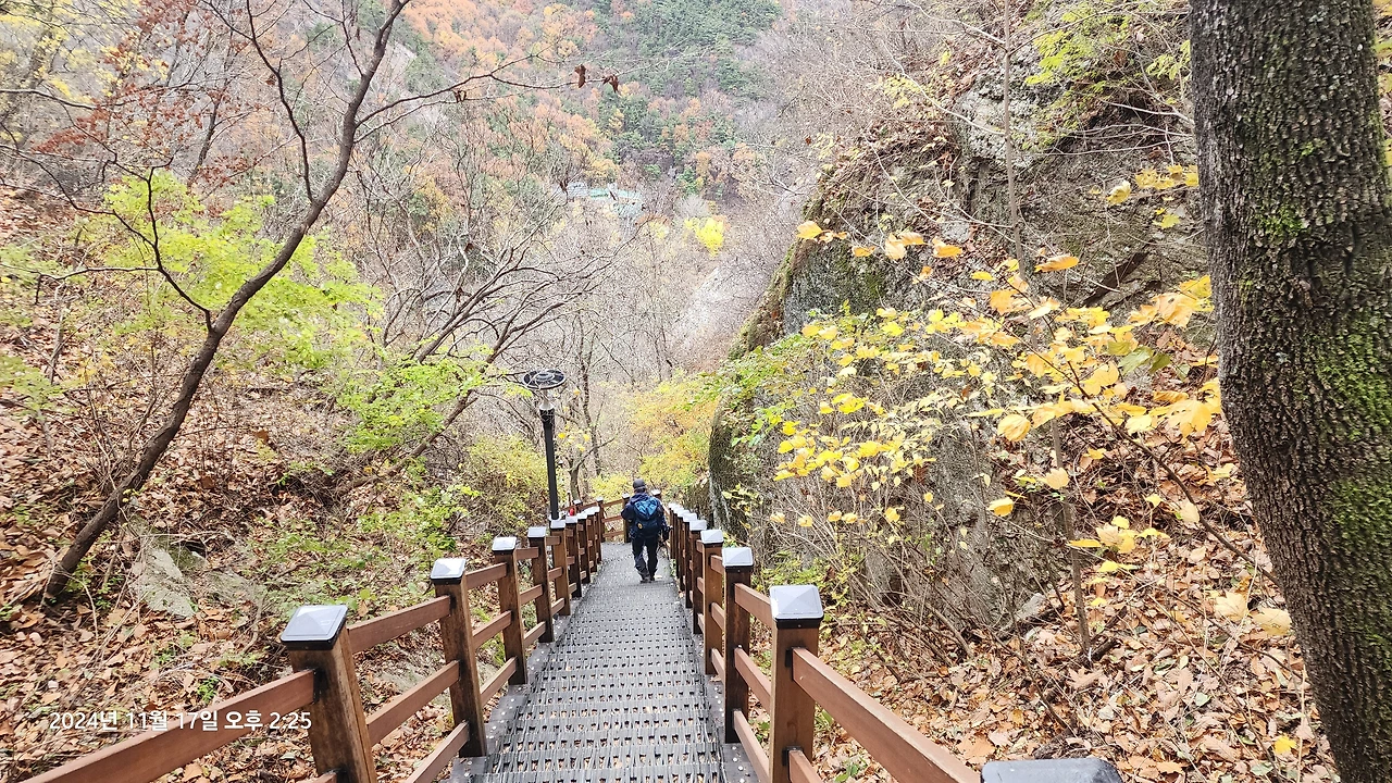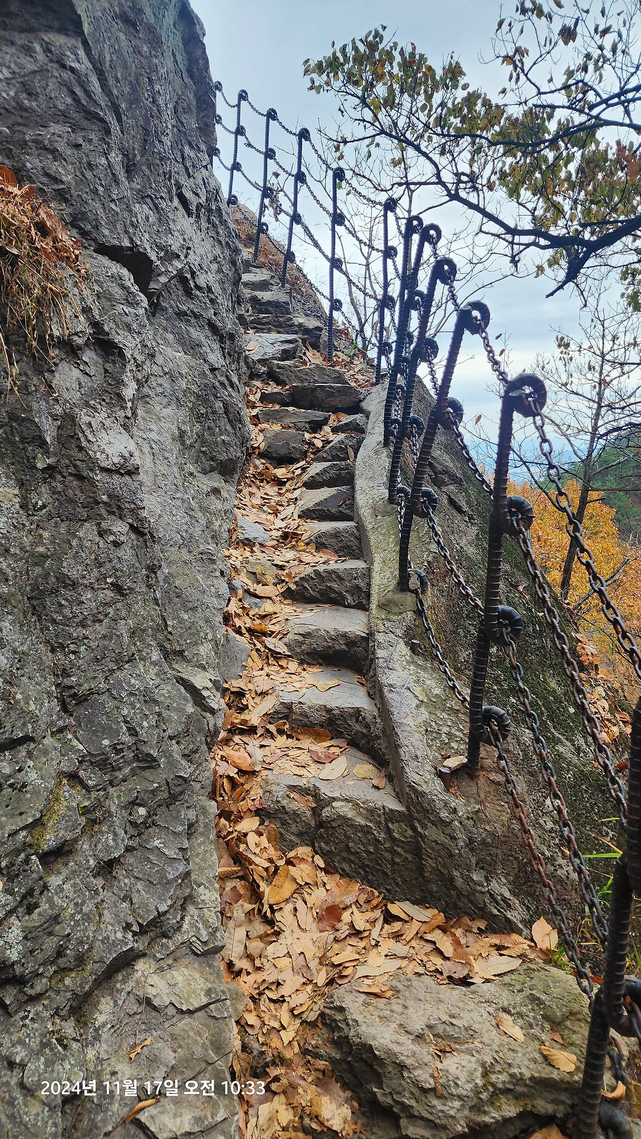 오늘은 자연경관이 뛰어나고 기암괴석이 많아 볼거리가 풍부하며, 등산로 주변에는 유명한 유적지가 많아 산악인들에게 사랑받는 명산인 금오산을 충덕, 종원이와 함께 산행했다. 오늘 금오산에는 빨간색, 노란색 단풍잎으로 곱게 단장한 가을과 앙상한 가지에 세찬 바람이 옷깃을 절로 여미게 하는 겨울이 있었다.