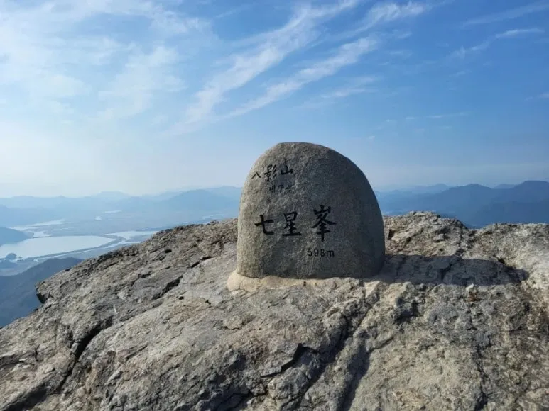 두류봉 사거리에서 '북극성을 축으로 하여 하루에 열두 번을 돌며 천만년을 변함없이 도는 칠성바위'라는 유래를 가진 7봉 칠성봉(598m)까지는 170m 거리였다. 6봉 두류봉에서 7봉 칠성봉까지는 약간의 오르막과 내리막이 있는 비교적 편안한 길이었다. 6봉 두류봉에서 약 250m 지점에 있는 팔영산 통천문을 지나 7봉 칠성봉에 도달했다. 7봉 칠성봉 주변에는 까마귀 떼가 맴돌고 있었다.