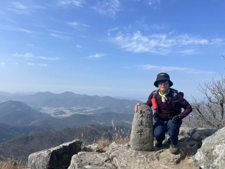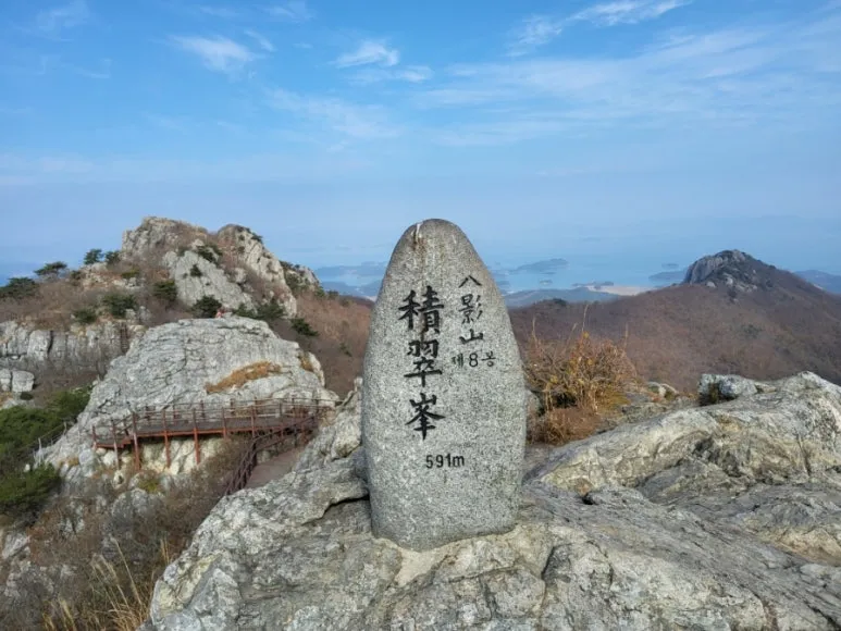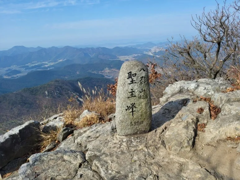 성주봉으로 가는 길은 가파른 철계단을 통해 이어졌다. '성스러운 산의 주인, 군주봉을 지키는 팔봉, 부처와 같은 성인바위, 팔영산의 주인 성주봉이 여기 계시다'라는 명칭의 유래를 가진 성주봉은 팔영산의 두 번째 봉우리로, 높이는 538m였다. 유영봉(491m) 보다 높았으나 전망은 그리 좋지 않았고, 가까이에는 생황봉(564m)과 사자봉(578m)이 위치해 있었다.