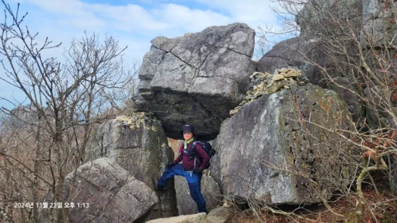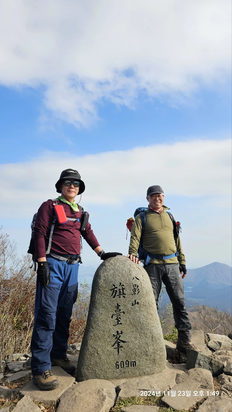 8봉 적취봉에서 약 100m 이동하여 이정목에 도착하자 탱그리 수석대장이 팔영상 정상인 깃대봉(609m) 방향을 안내하였다. 이곳에서 깃대봉까지는 500m 구간은 큰 오름이나 암릉구간이 없는 완만한 능선길이었다.