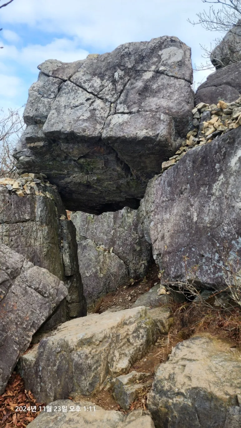 성주봉(538m)에서 출발하여 5분 만에 '열아홉 대나무통 관악기 모양의 바위, 생황이라 불리며 바람이 불 때 아름다운 소리를 낸다'는 전설을 가진 생황봉(564m)에 도착했다. 생황봉 뒤로는 선녀봉 능선과 다도해의 멋진 풍경이 펼쳐져 있었다.
