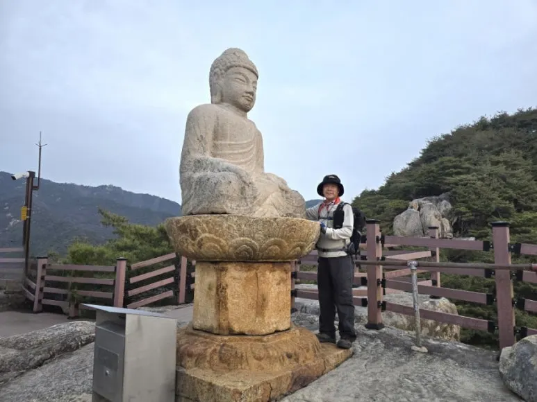 새순이 봄을 알리는 초록길을 따라 소원을 이루어 준다는 관룡사 경내로 들어섰다. 경내의 홍목련나무와 수양벚나무를 지나 일출을 맞이하기 위해 바쁘게 용선대로 향했다. 용선대에 도착했지만 태양은 구름 뒤에 숨어 일출을 볼 수 없었다. 용선대 석조여래 좌상을 둘러본 후 아쉬움만 남긴 채로 관룡산을 거쳐 화왕산 정상으로 향했다.