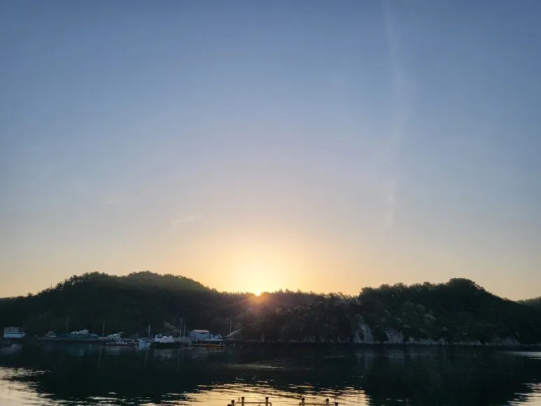 사량도는 경상남도 통영에 위치해 있어, 고성 용암포항에서 7시에 출항하는 첫 배를 타고 입도해야 여유롭게 등반을 즐길 수 있다. 그래서 산행 전날 늦은 밤, 부평구청 역 4번 출구에서 의섭이를 만나 산악회 버스에 올랐다. 무박 산행은 어둠 속을 달려 마지막 휴게소인 산청휴게소에서 새벽 3시에 아침을 먹고, 동트기 전에 고성 용포항에 도착해 여객선 출항을 기다리며, 지난주 화왕산 용선대에서 놓친 일출을 감격스럽게 맞이했다.