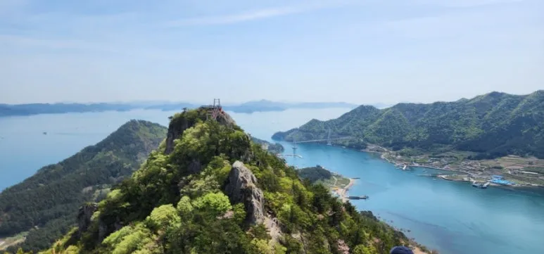 사량도 지리산 정상에서 바다 건너 육지의 지리산이 선명하게 보인다. 그래서 여기를 지리망산이라고 불렀다.
